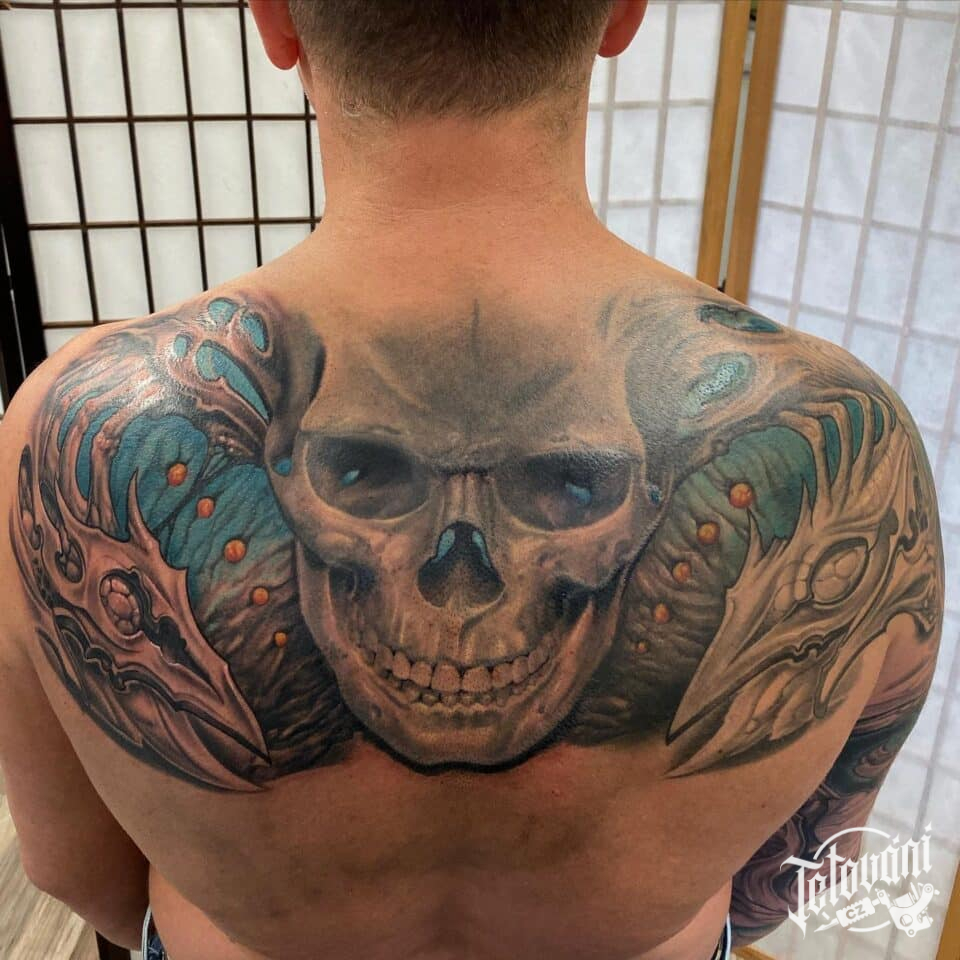 Tetování lebka, a lebka zvířete na lopatky