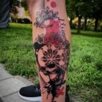 Tetování lebka a mandala na lýtko