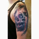 Tetování lebka a portrét na rameno