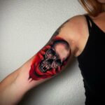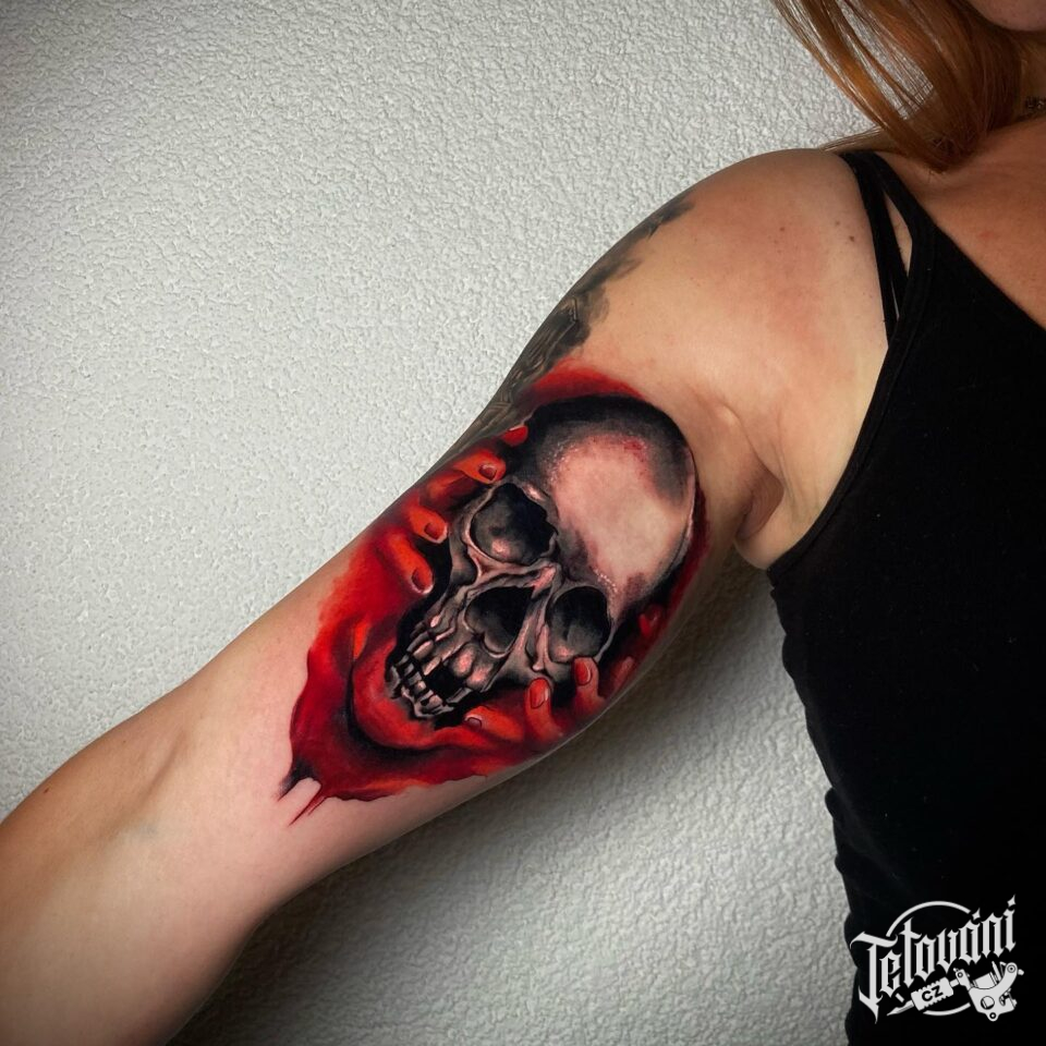 Tetování lebka a ruce na bicepsu
