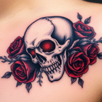 Tetování lebka a růže, ...