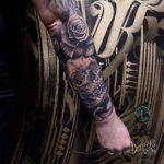 Tetování lebka a růže na předloktí