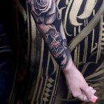 Tetování lebka a růže na předloktí