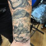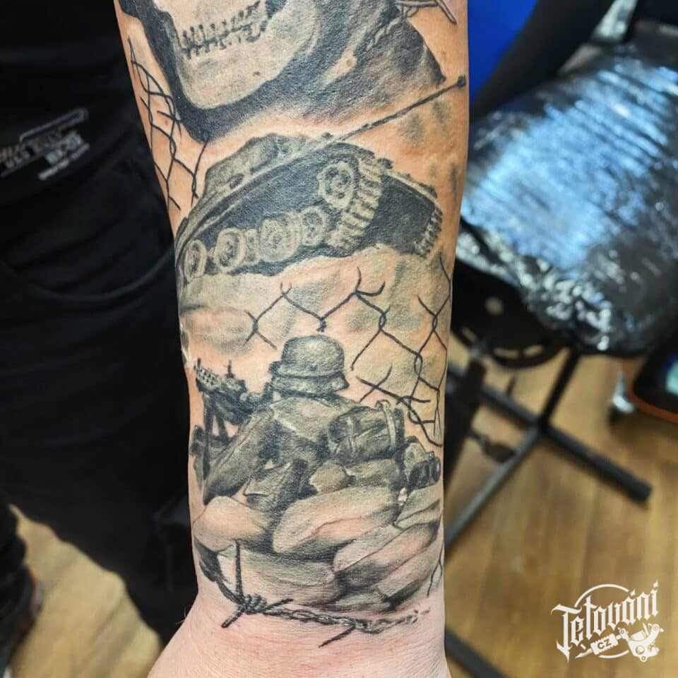 Tetování lebka a vojáci na předloktí