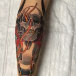 Tetování lebka a zvíře na lýtku
