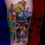 Tetování lebka Anubis na stehně