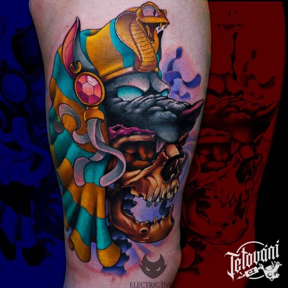 Tetování lebka Anubis na ...