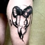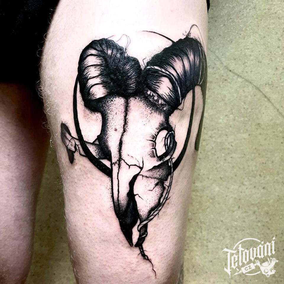 Tetování lebka Berana a Měsíc na stehno