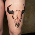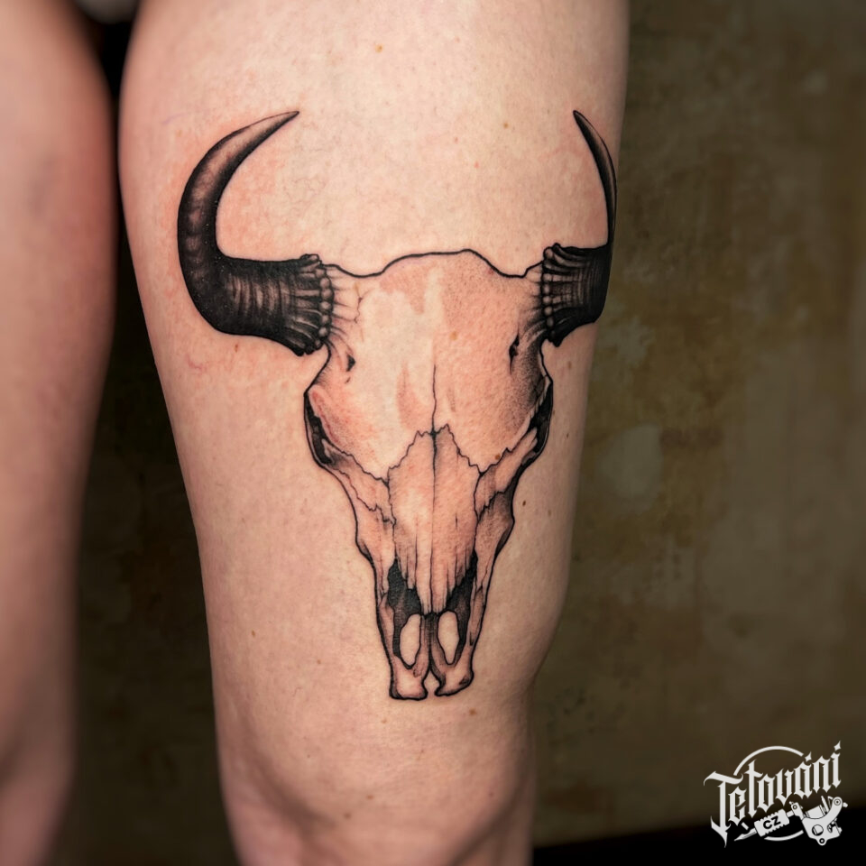 Tetování lebka býka na stehně