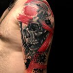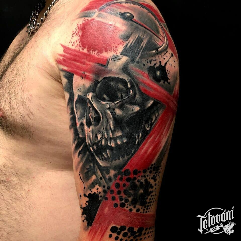 Tetování lebka, čáry na rameno