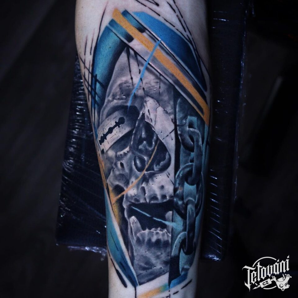 Tetování lebka, čáry, s...