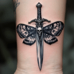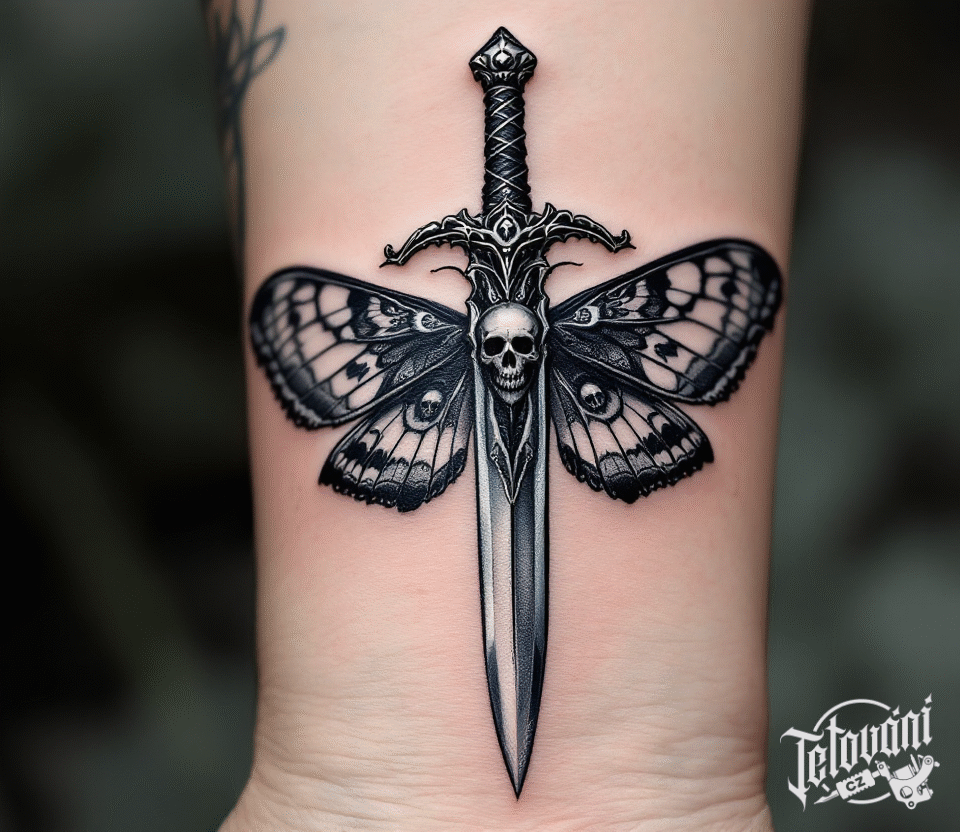 Tetování lebka, dýka se smrtihlavem na předloktí