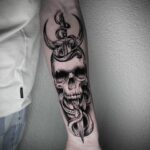Tetování lebka, had a meč na předloktí