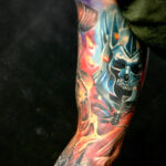 Tetování lebka, hlava rytíře na paži