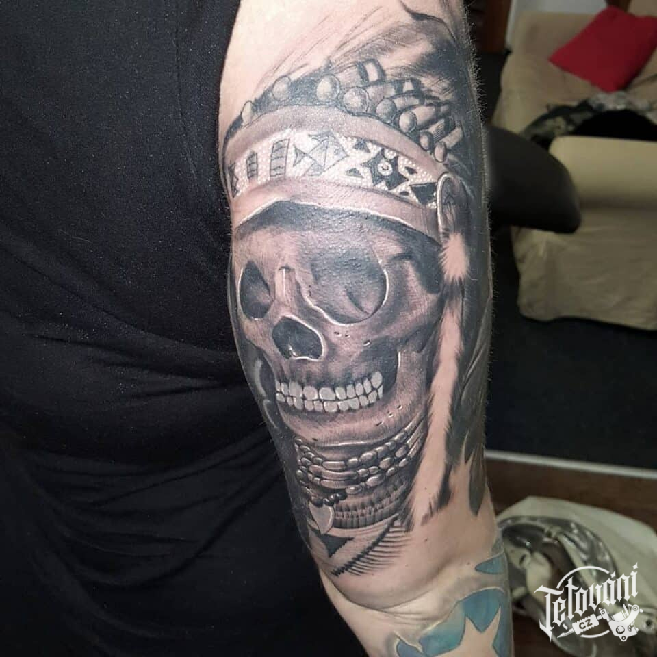 Tetování lebka indiána na rameno