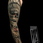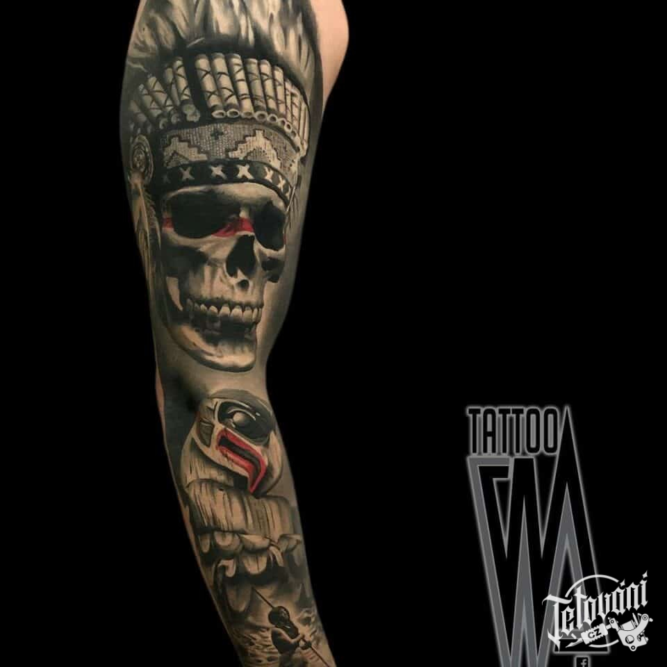Tetování lebka, indiáni na rukávu