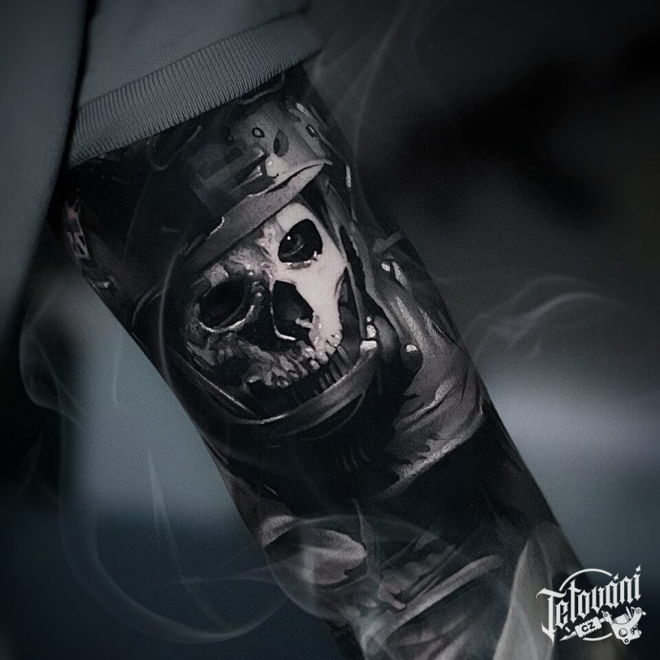 Tetování lebka kosmonauta na ruku