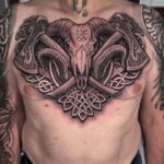 Tetování lebka Kozoroha, Vikingové, Triquetra, znaky a symboly na hrudník