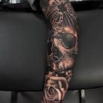 Tetování lebka, květina růže na ruku