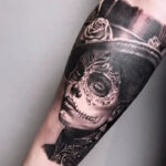 Tetování portrét ženy muerte na předloktí