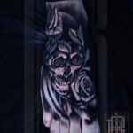 Tetování lebka, lebka a růže na nohu