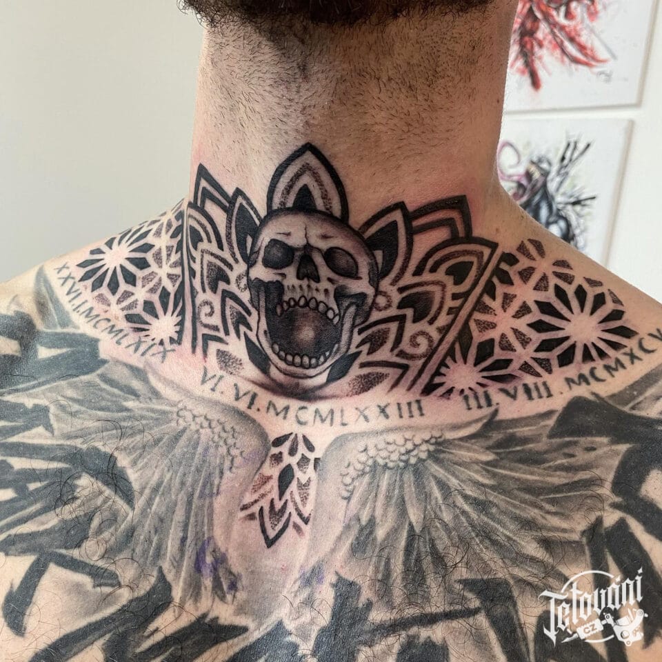 Tetování lebka, mandala n...