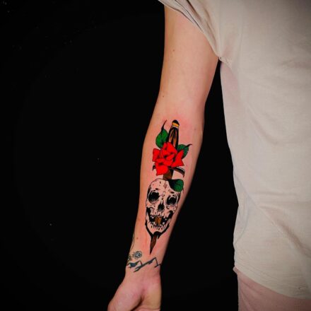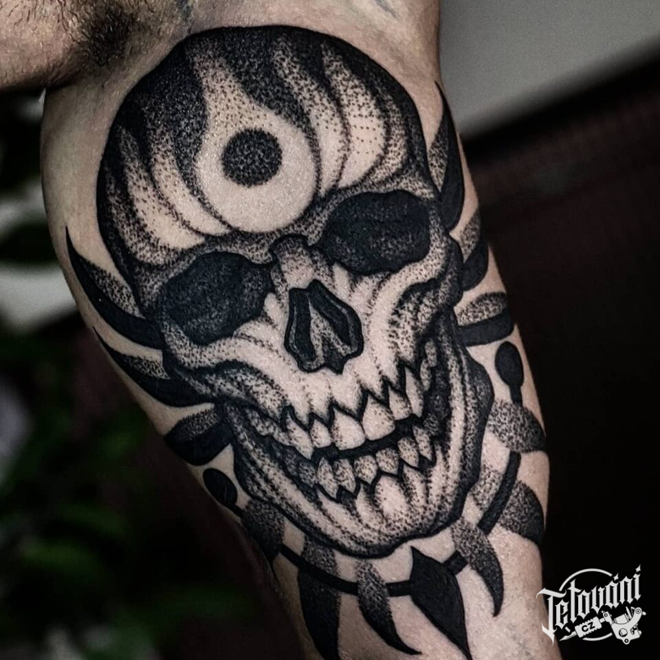 Tetování lebka na bicepsu