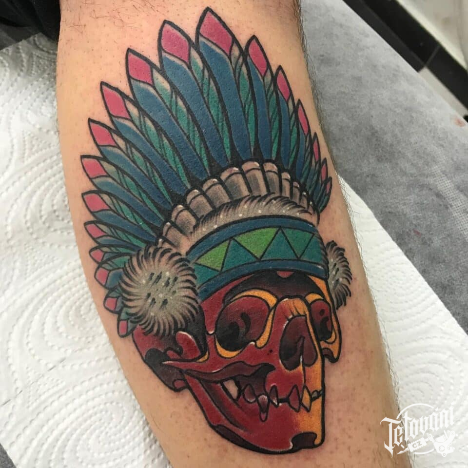 Tetování lebka na holeni