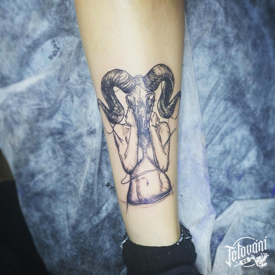 Tetování lebka na holeni