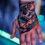 Tetování lebka na hřbetu ruky