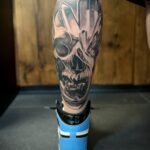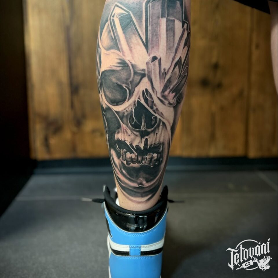 Tetování lebka na lýtko