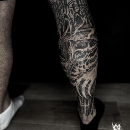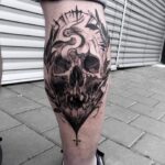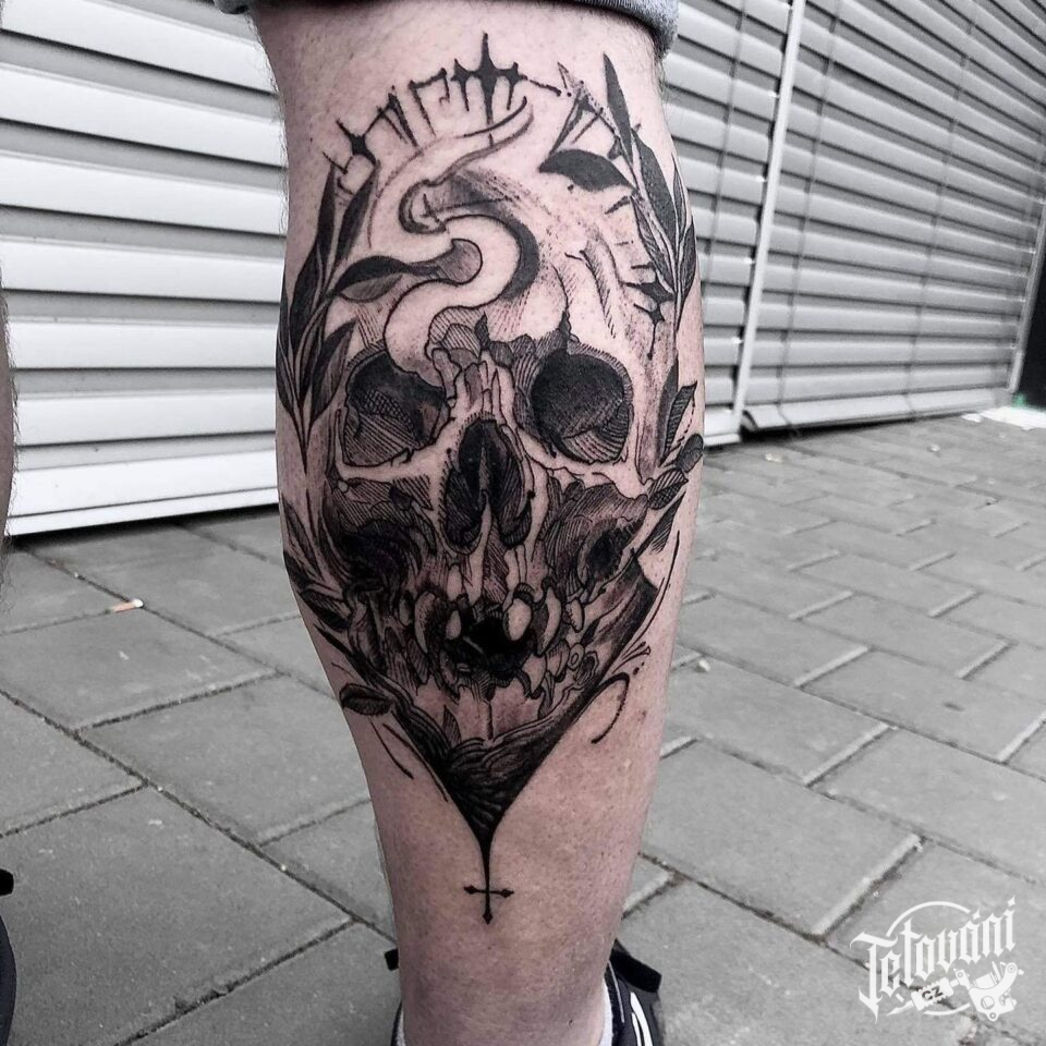 Tetování lebka na lýtko