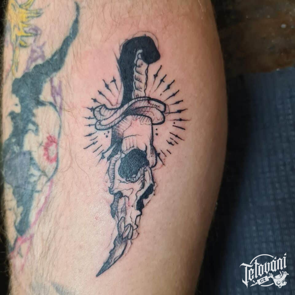 Tetování lebka na lýtku