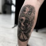 Tetování lebka na lýtku
