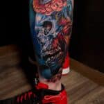 Tetování lebka na lýtku