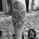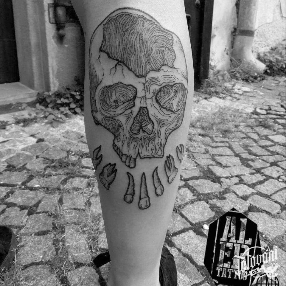 Tetování lebka na lýtku