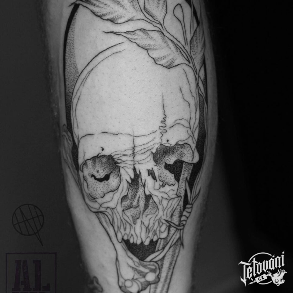 Tetování lebka na lýtku