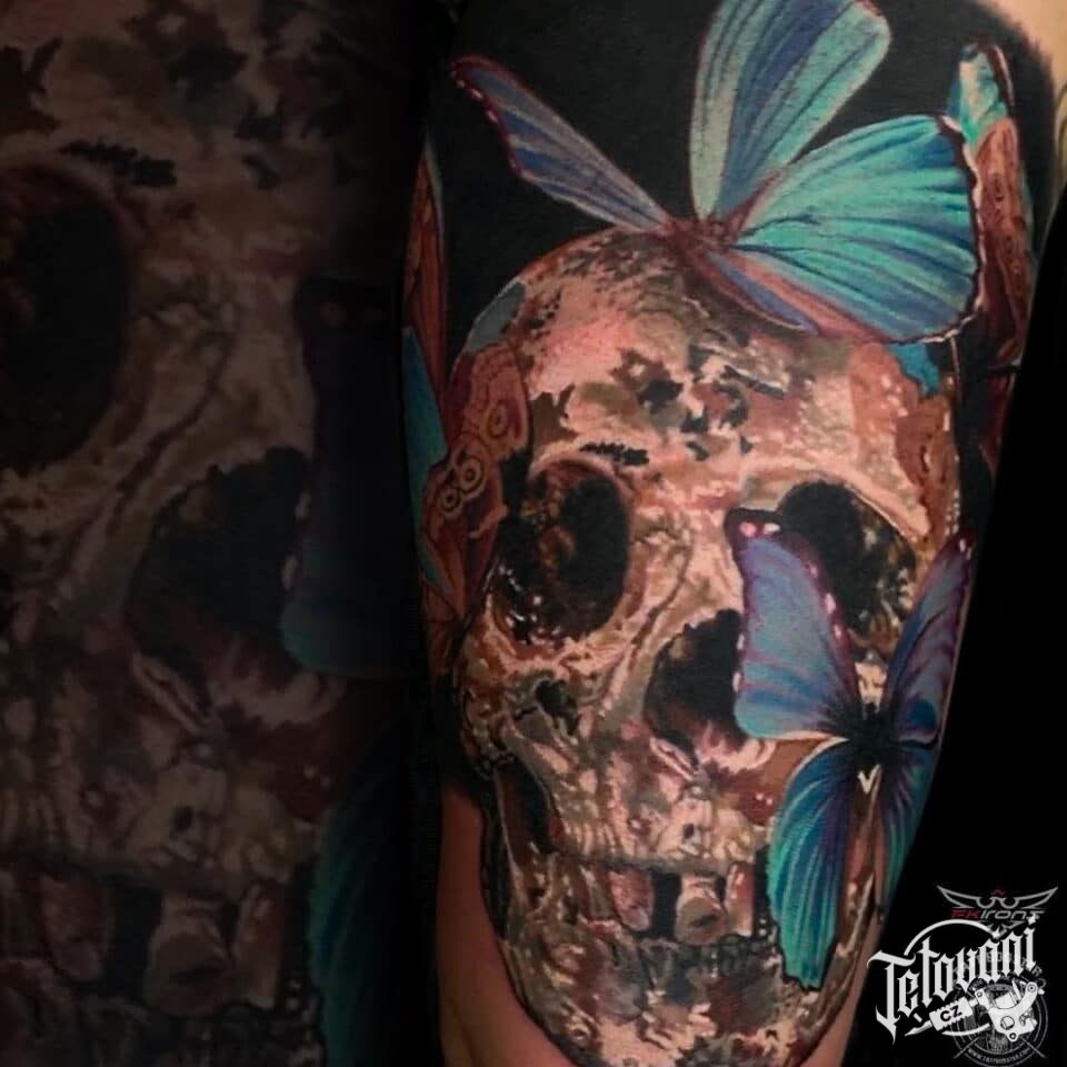 Tetování lebka na paži