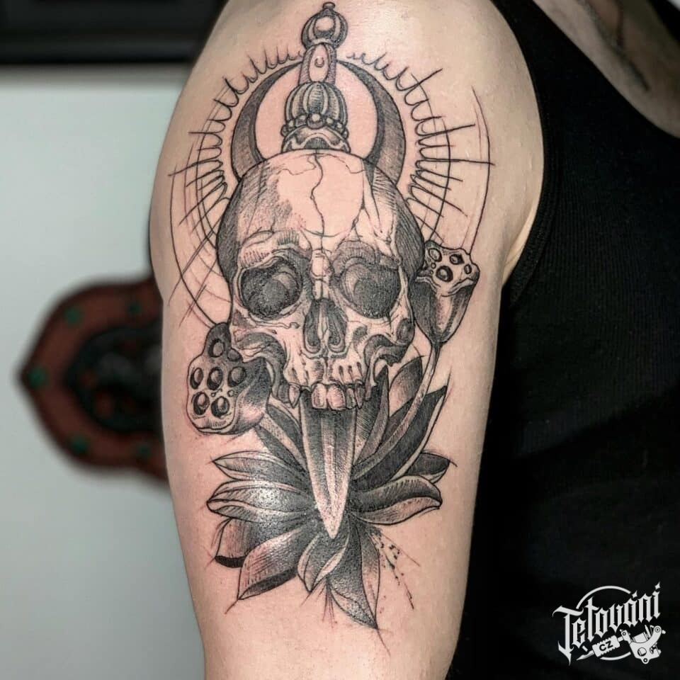 Tetování lebka na paži