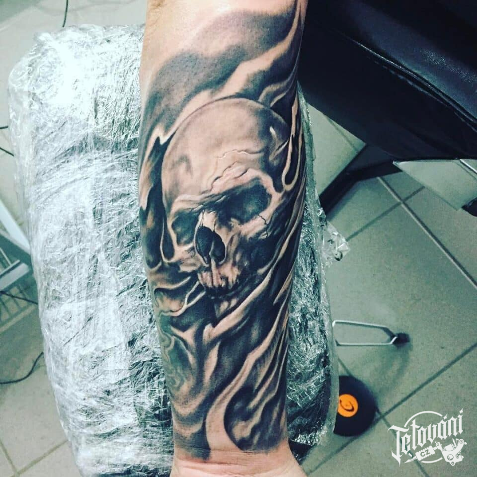 Tetování lebka na předloktí