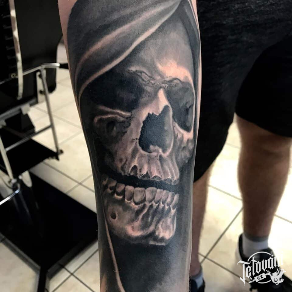 Tetování lebka na předloktí