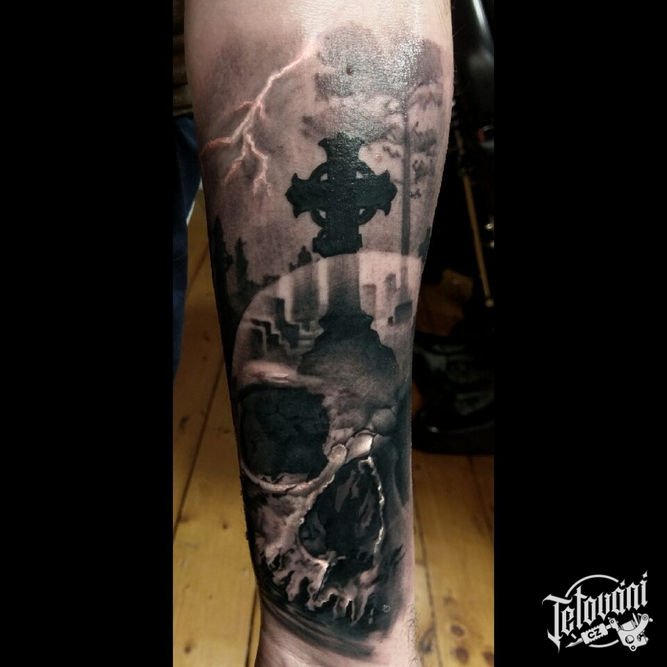 Tetování lebka na předloktí