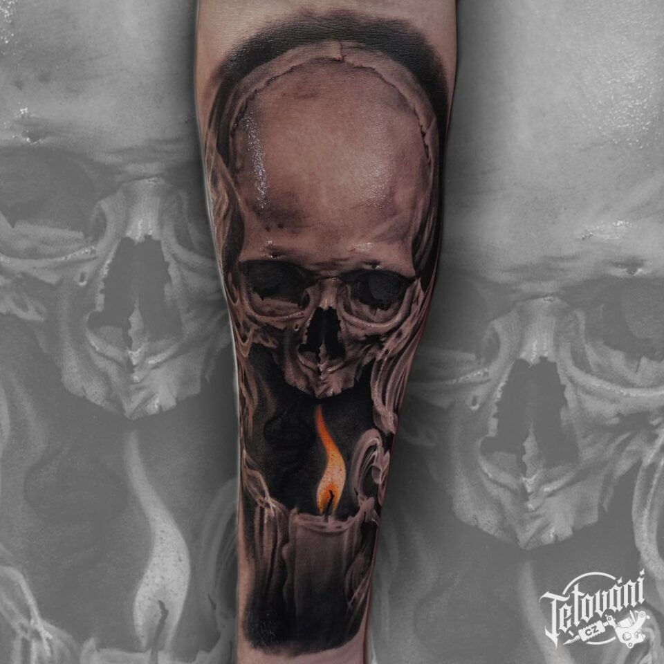 Tetování lebka na předloktí