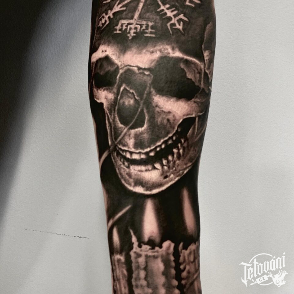 Tetování lebka na předloktí
