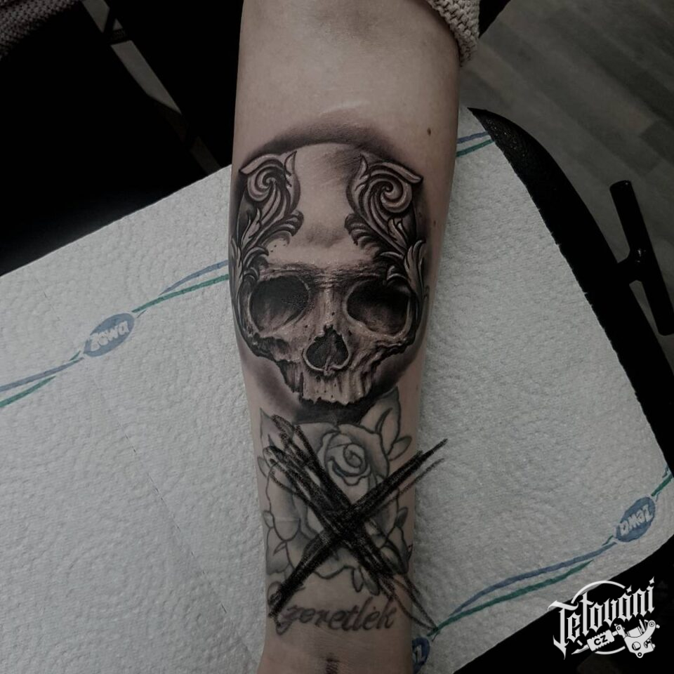Tetování lebka na předloktí