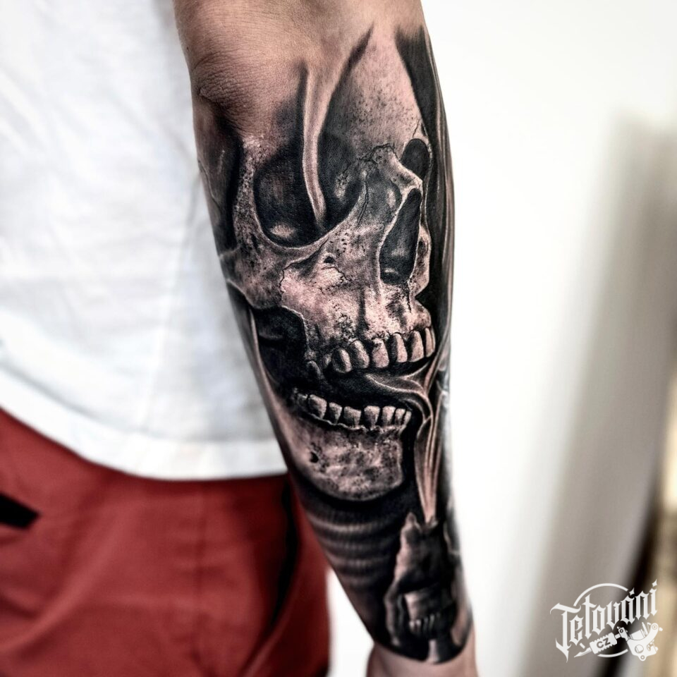 Tetování lebka na předloktí