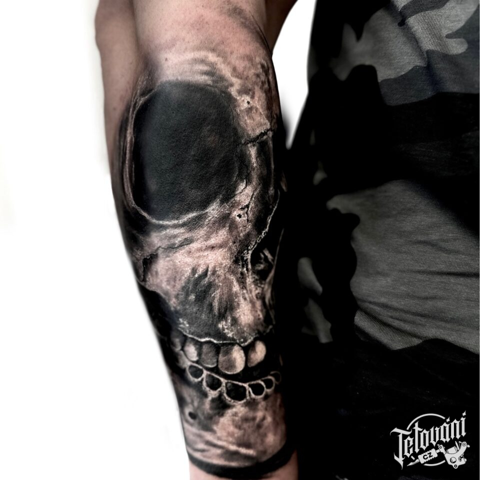 Tetování lebka na předloktí