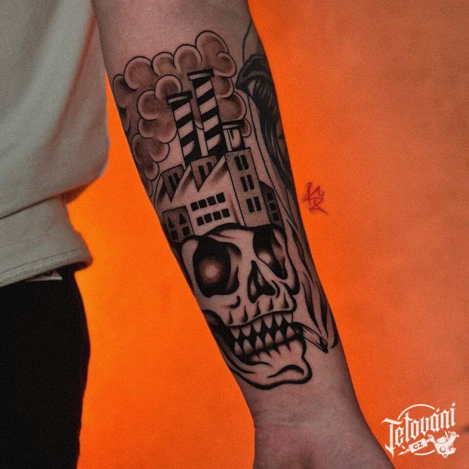 Tetování lebka na předloktí