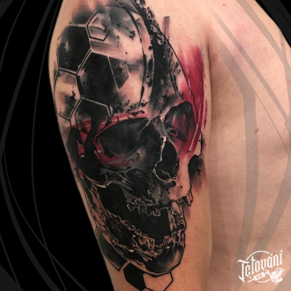 Tetování lebka na rameni