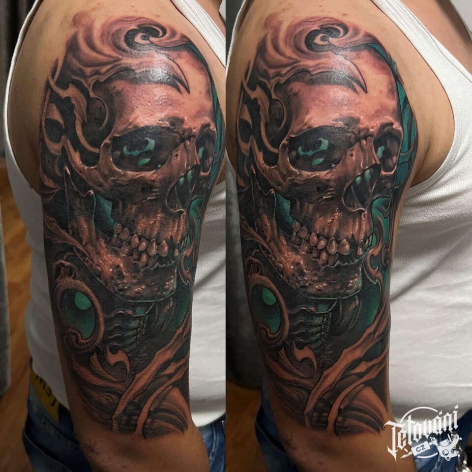 Tetování lebka na rameno